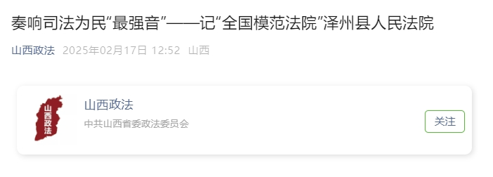 省媒點贊澤州法院工作:奏響司法為民“最強音”