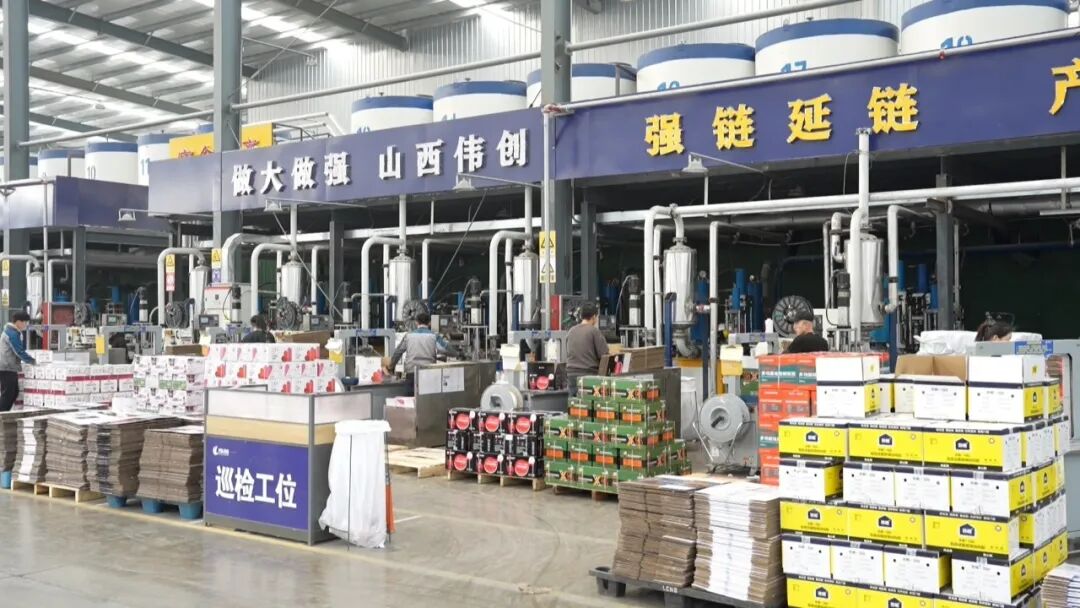 ????走進(jìn)山西偉創(chuàng)新材料有限公司生產(chǎn)車間,六條全自動化生產(chǎn)線正開足馬力運轉(zhuǎn),打包好的產(chǎn)品源源不斷“下線”裝車,一派繁忙的生產(chǎn)景象。